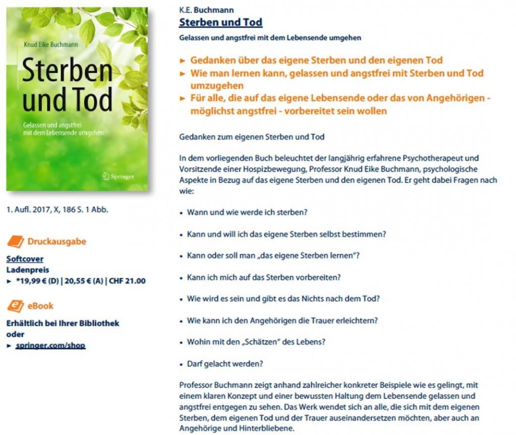 Sterben und Tod gelassen und angstfrei mit dem Lebensende umgehen (Springer Verlag)
